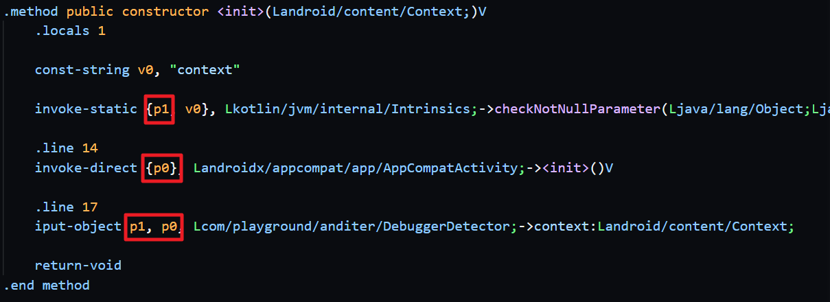 iget p0, p0, Lkotlin/jvm/internal/Ref$IntRef;->element:I //p0(첫 번째 파라미터) 레지스터 변수에 할당된 p0의 인자 값을 읽어 온다.