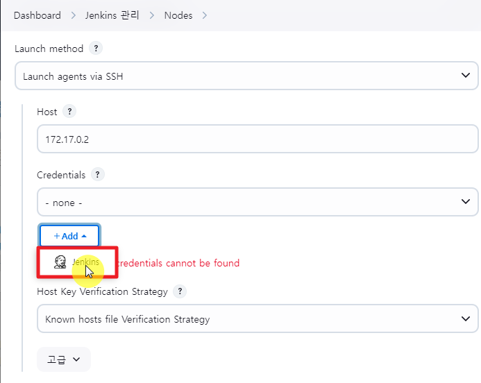 ssh-keyscan -H 신규노드IP >> /var/jenkins_home/.ssh/known_hosts