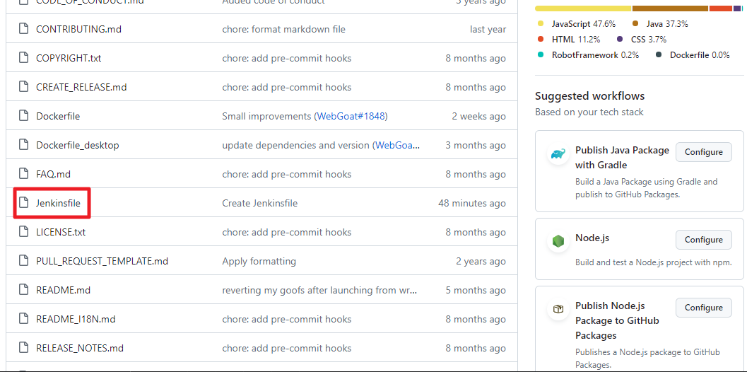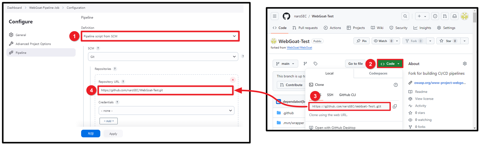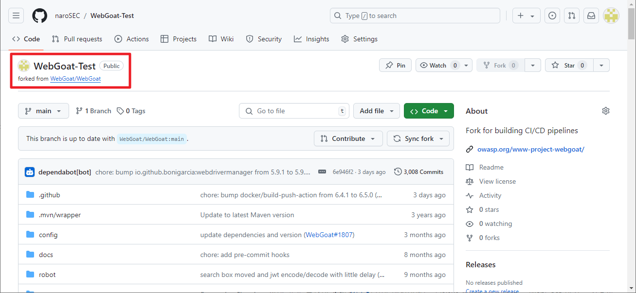 빌드에 사용할 소스 코드는 OWASP(Open Web Application Security Project)에서 개발하고 유지보수 중인 WebGoat 프로젝트이다. CI/CD 파이프라인을 이해하기 위한 단순한 환경 구축이라면, 개인 소스 코드나 테스트용 빌드 소스를 사용해도 무방하다. 그러나 이 포스팅에서는 SAST를 구현하여 소스 코드의 취약점을 점검할 예정이므로, 다양한 취약점이 존재하는 WebGoat 환경을 사용하는 것이 적합하다.