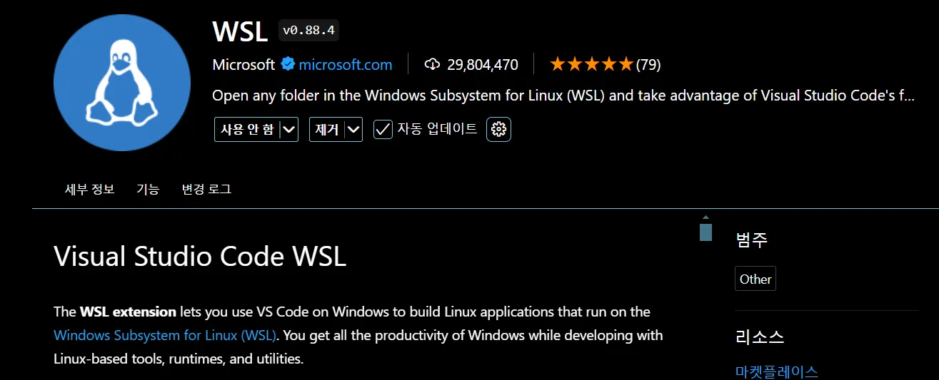 1. VSCode 플러그인에서 "WSL"을 검색하여 설치해준다.