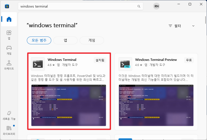 3. "Microsoft Store"에서 "Windows Terminal"을 설치해준다.