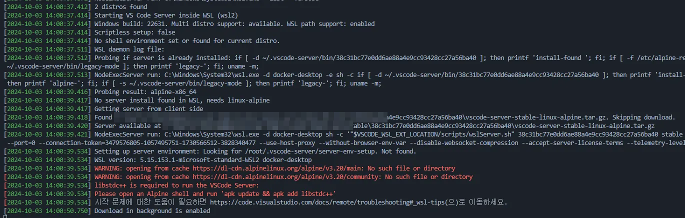 이 오류는 WSL에 Ubuntu 외에 다른 배포 이미지가 설치된 경우, VSCode가 Ubuntu가 아닌 다른 리눅스 서버로 연결을 시도하면서 발생하는 문제이다.
