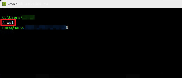 4.2 "Windows Terminal" 외 다른 명령 프롬프트 도구를 사용하는 경우 [그림 5]와 같이 콘솔 창에서 "wsl" 명령어를 입력하면 된다. 이후, [4.1] 과정과 동일하게 기본 사용자 계정을 생성해주면 된다.