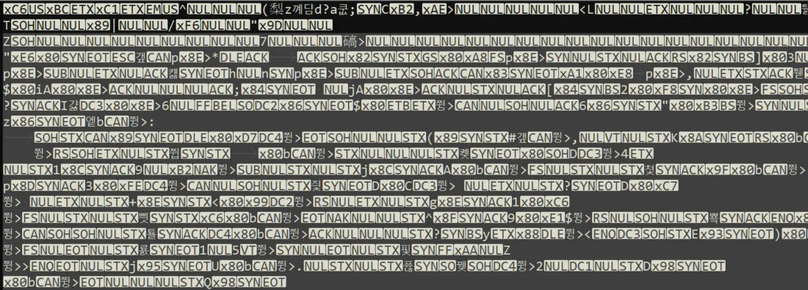 그러나 최근에는 기본적으로 Hermes JS 엔진이 적용됨에 따라, 앱을 빌드하는 과정에서 JavaScript 번들 파일이 자동으로 Hermes 바이트코드로 변환된다. [그림 13]은 Hermes 바이트 코드로 변환된 index.android.bundle 파일 내용 중 일부이다.