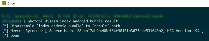 이제 번들 파일이 어떤 함수를 통해 로드되며, 해당 함수가 어디에서 호출되는지 확인했으므로, HbcTool을 활용해 번들 파일을 디컴파일한 후 변조 과정을 수행한다.