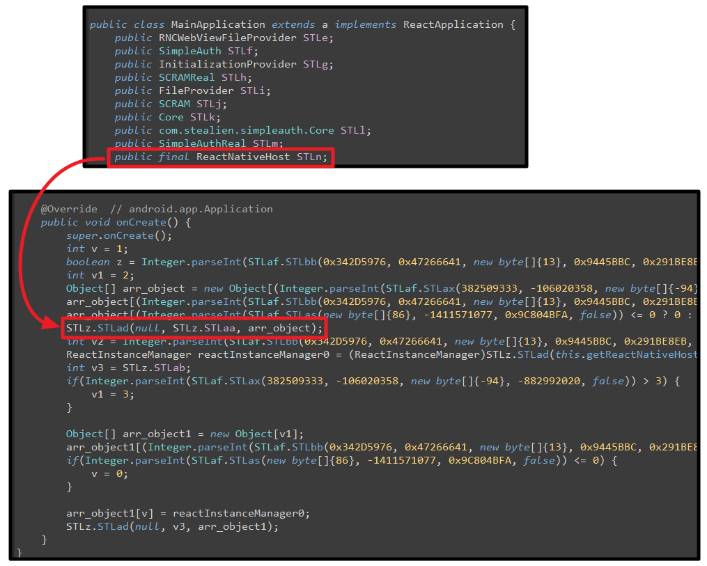 반면, React Native로 개발된 모바일 애플리케이션은 기본적인 프레임워크 구조를 제외하면 대부분의 핵심 기능이 JavaScript로 작성된다. 따라서, React Native 기반 앱의 .dex 파일을 디컴파일해 보면 [그림 2]와 같이 주요 기능을 담당하는 코드가 Java 파일에 포함되지 않은 것을 확인할 수 있다. 이는 React Native 앱이 기존 Java 기반 애플리케이션과는 다른 방식으로 분석해야 함을 시사한다.