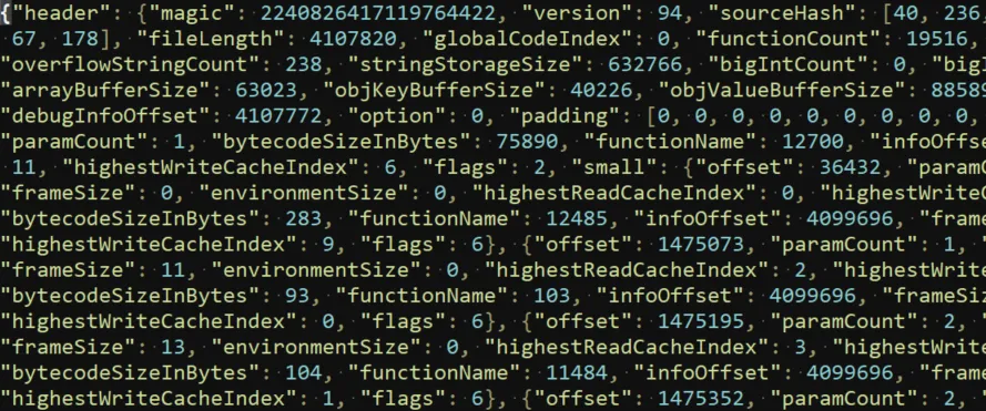 metadata.json 파일은 디컴파일 시 사용된 Hermes JS 엔진에 대한 메타 정보가 저장되어 있다.