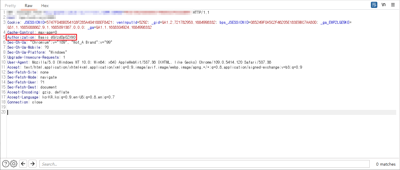 [그림 2]의 Authorization 헤더를 보면 Base64 인코딩 값이 똑같은 것을 알 수 있다.